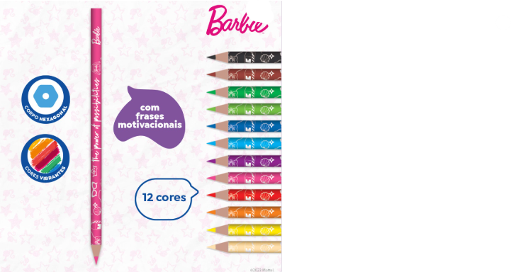 Dê vida aos seus desenhos com os encantadores Lápis de Cor da Barbie! Com uma paleta de 12 cores vibrantes, esses lápis são perfeitos para todas as pequenas artistas que sonham em criar mundos mágicos e cheios de estilo.